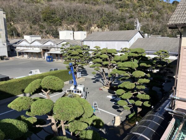 加古川市のくまがい造園です。大きなカイヅカイブキが並ぶ立派な会社、工場の剪定工事を行いました。海の側なのですが、穏やかな日よりの中作業する事が出来ました。17メートルの高所作業車からの写真です。いい眺めです。