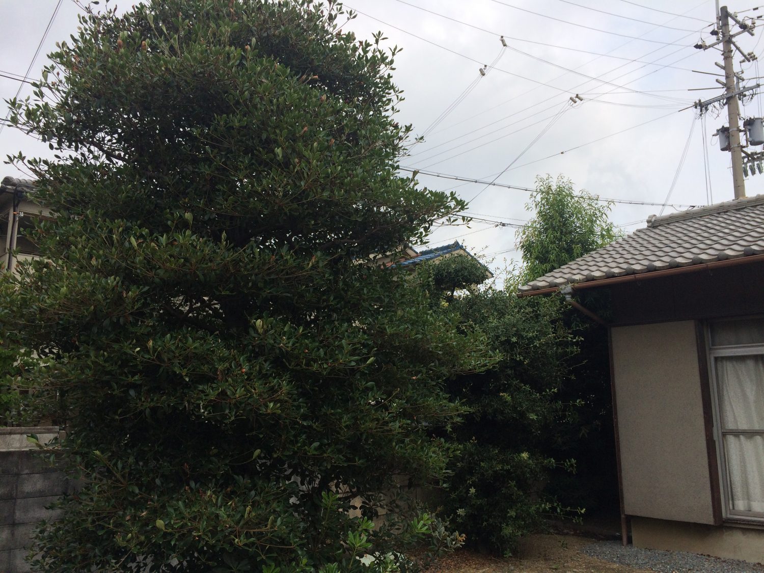 兵庫県加古川市にて庭木の剪定を行いました。カシの木等の剪定を行いました。